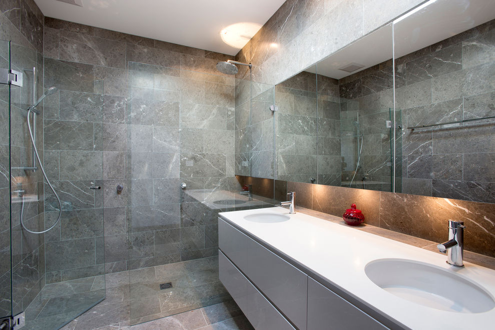 Marble fireplace hearth, kitchen splashback and bathroom tiling provide a touch of luxury